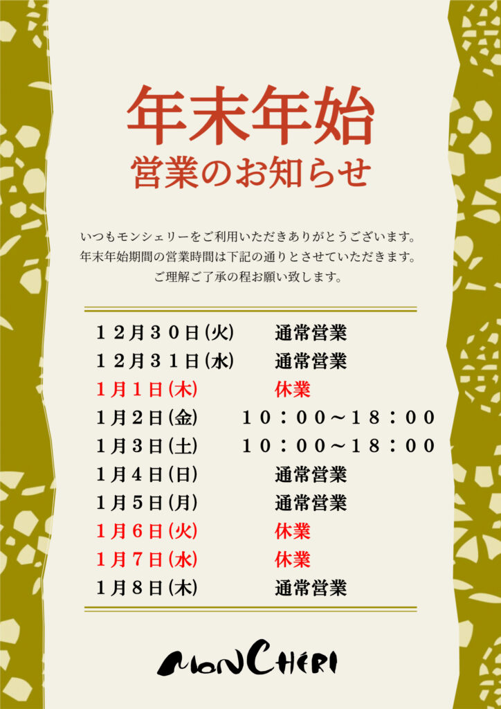 【クリスマス2025】たくさんのご来店ありがとうございました!&年末年始の営業のお知らせ