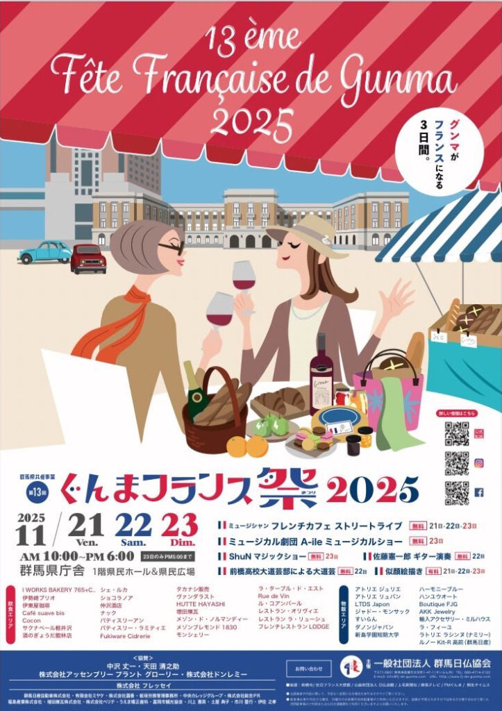 11月21日(金)~23日(日)に群馬県庁で開催される【ぐんまフランス祭2025】に、今年もモンシェリー出店いたします!