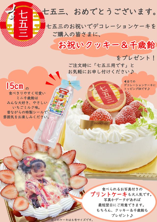 11月中、七五三のお祝い用でデコレーションケーキをご購入いただいた皆様に
